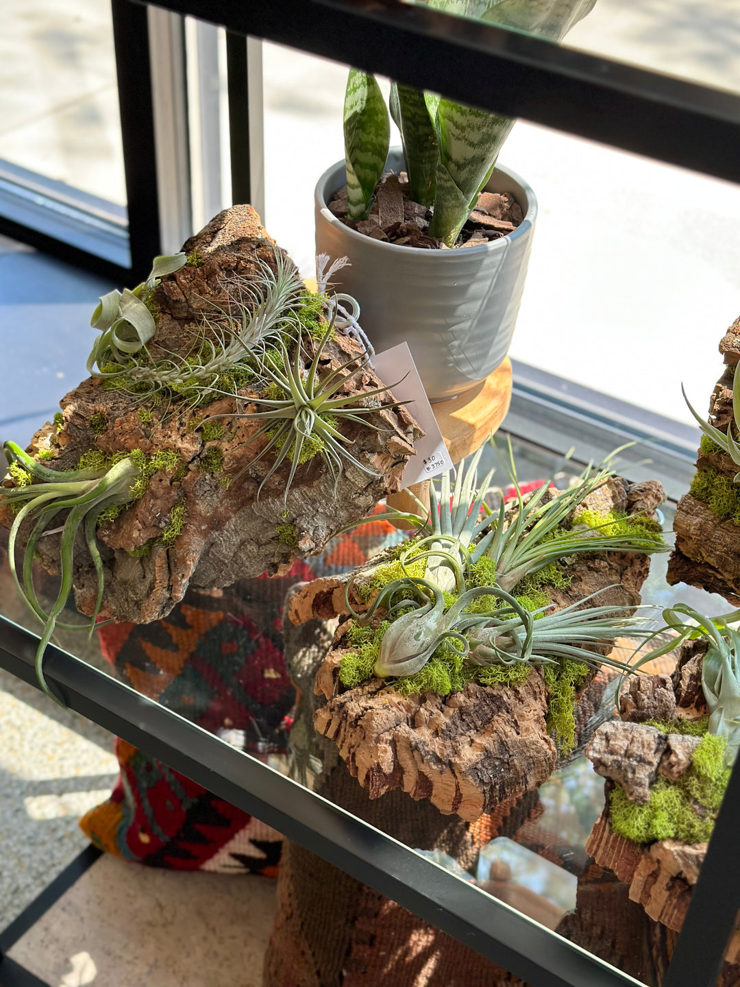 Due to their popularity and ease of care, air plants are an easy item to add to well-curated retail settings. Our plants are featured in nurseries, garden centers, florists, botanical shops, jewelry stores, pottery stores, farmer's markets and gift shops across the country! Retailers find that air plants are a simple, natural element that can easily be integrated to a store setting without a lot of fuss about care or mess from dirt. The plants fit nicely on shelves and other displays where stock is displayed.