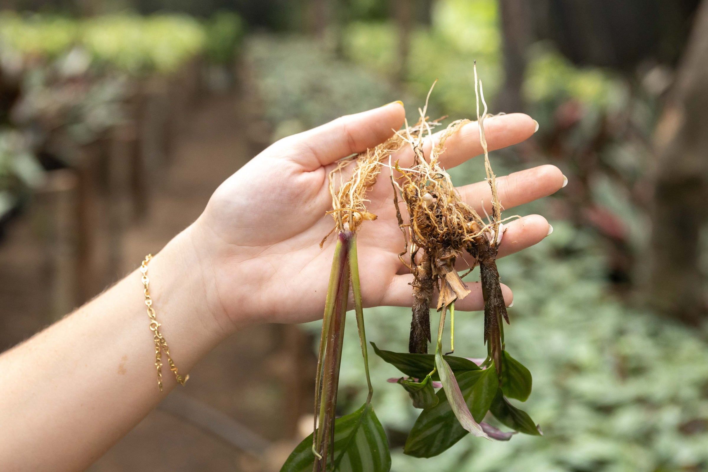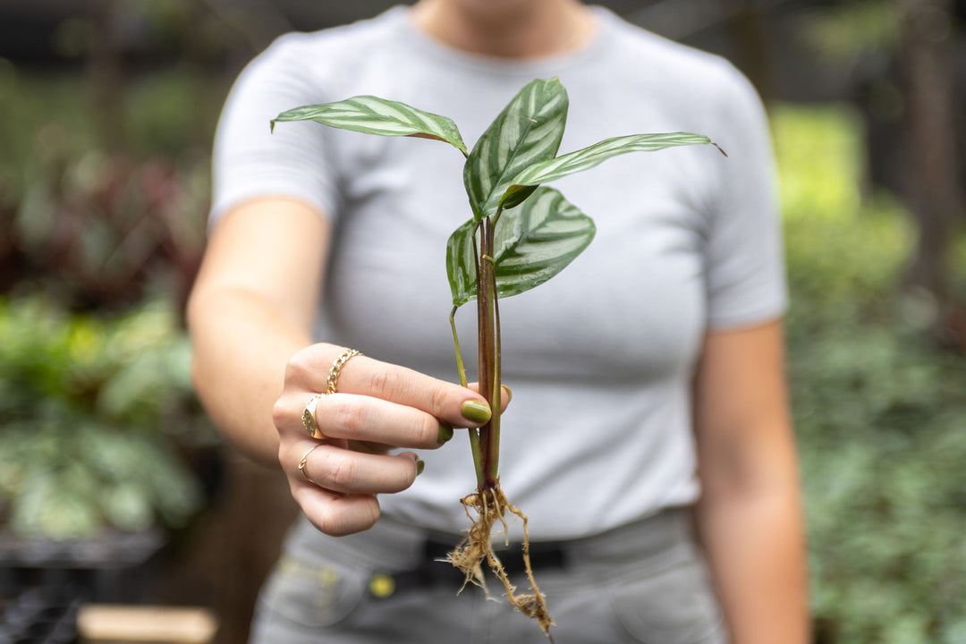 The order is sent to our jungle nursery. We select, divide and clean the highest-quality rooted Calathea cuttings for your order, ensuring they are free of pests.